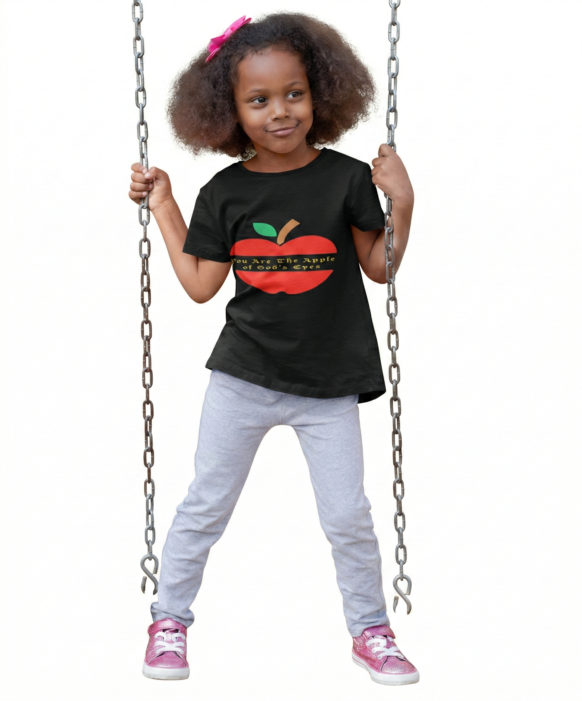 Apple of God's eyes Printed T-Shirt is a statement piece and no matter the season, you will love to let your child wear. Create a statement piece with this beautifully designed t-shirt. Let your child express their confidence in knowing that they are the apple of God's eyes despite what others may tell them.