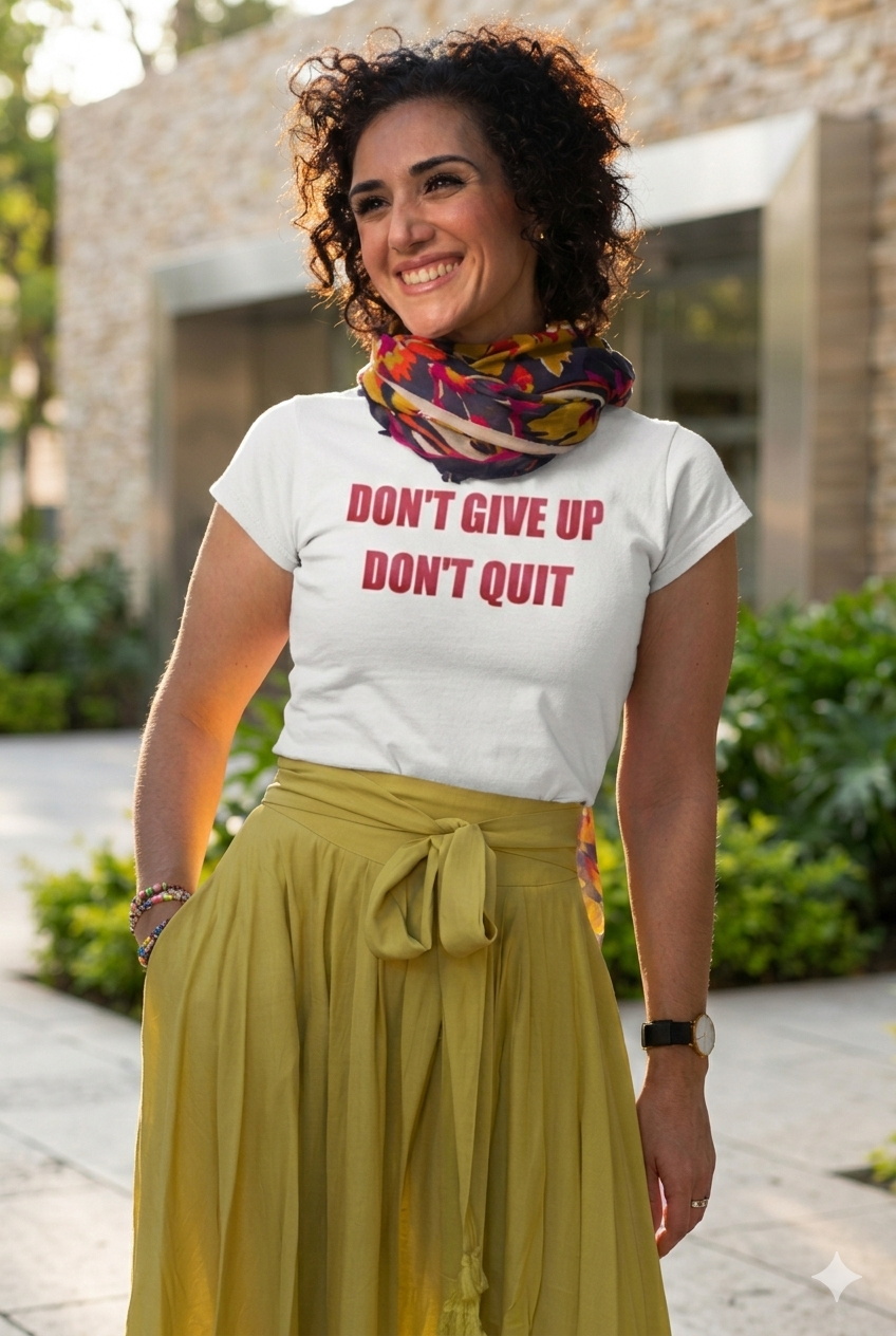 This beautiful handmade faith clothing will remind you that no matter what comes your way, do not give up or quit.