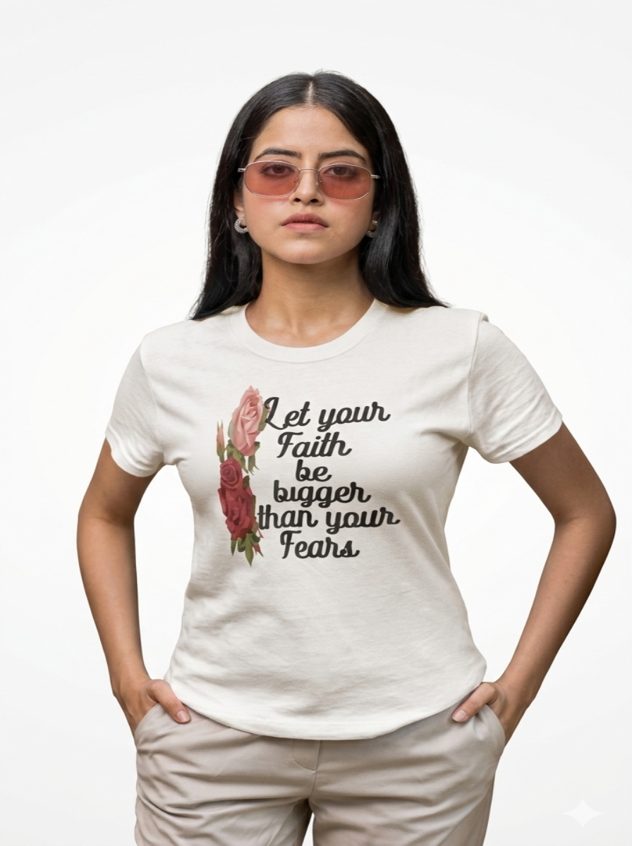 Let your faith be bigger that your fears is a beautifully designed t-shirt that is not only beautiful to look at but also lovely to touch.