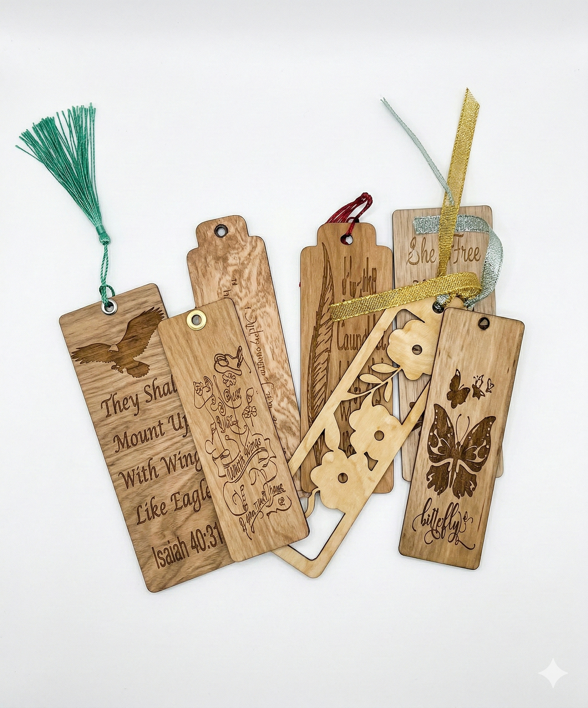 Need to be reminded of the last page you were reading? Why not purchase one of our beautifully designed wooden bookmarks. Made with 3mm thick plywood, these engrave wooden bookmarks are not only sturdy but will last a longer time than paper bookmarks. These bookmarks can be purchased as gifts for someone or even for yourself. They will love you for it.